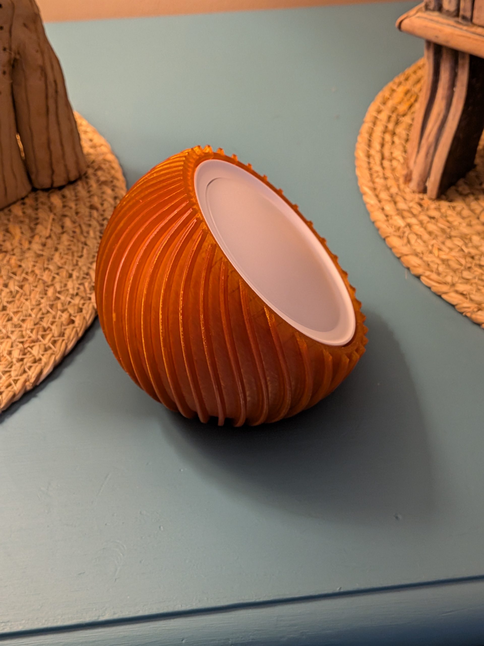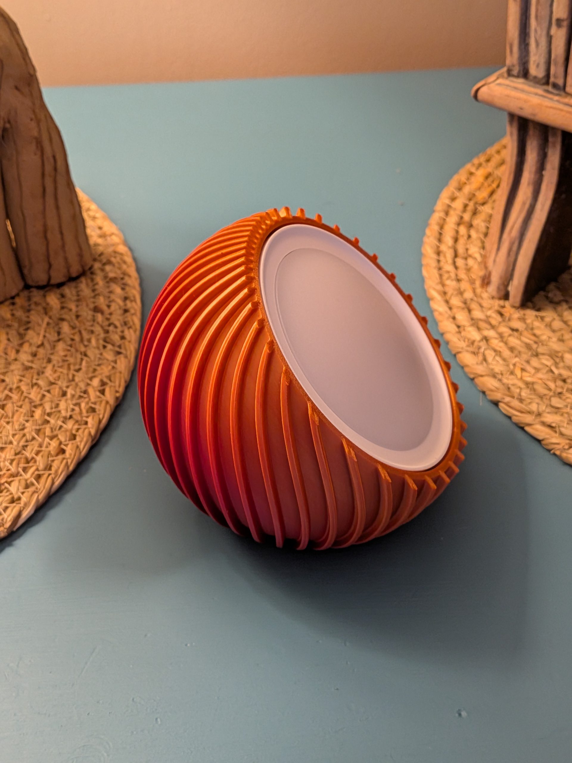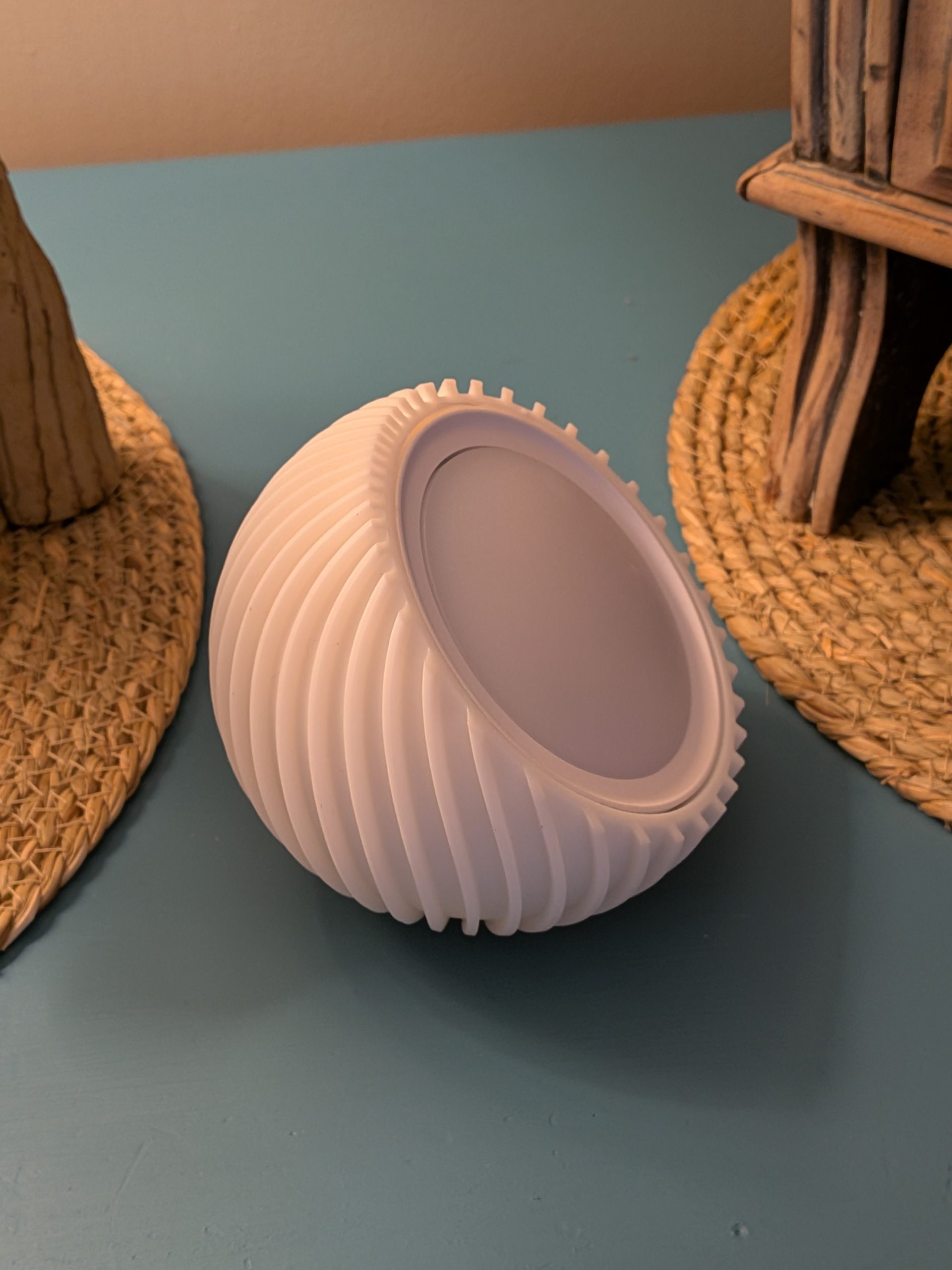 The ribbed surface adds a sculptural, organic look to it rather than it being a sterile white ball.