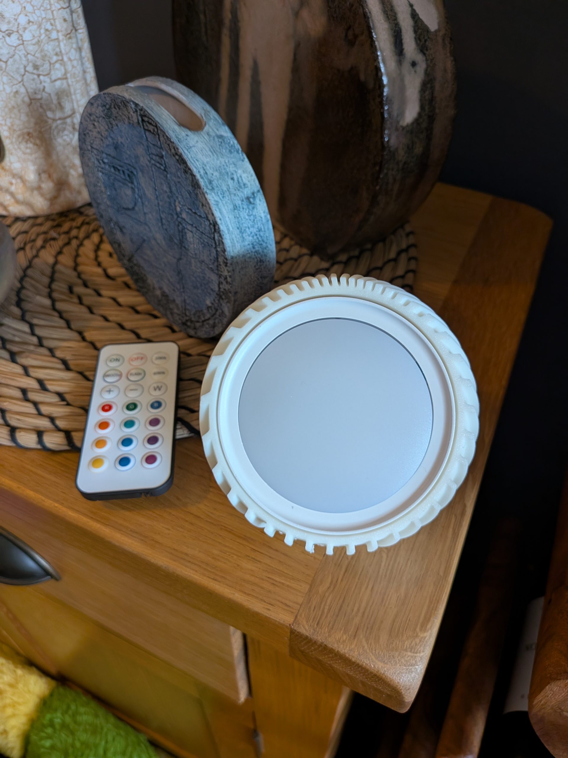 Because it’s a fully rechargeable light, you’re not tied to sockets or stuck planning your layout around cables. You can move it wherever you need it—on a dresser in the evening, a hallway corner at night, or even as a centrepiece on a table. It lasts up to 24 hours between charges depending on the colour you choose, all easily controlled with the included remote.