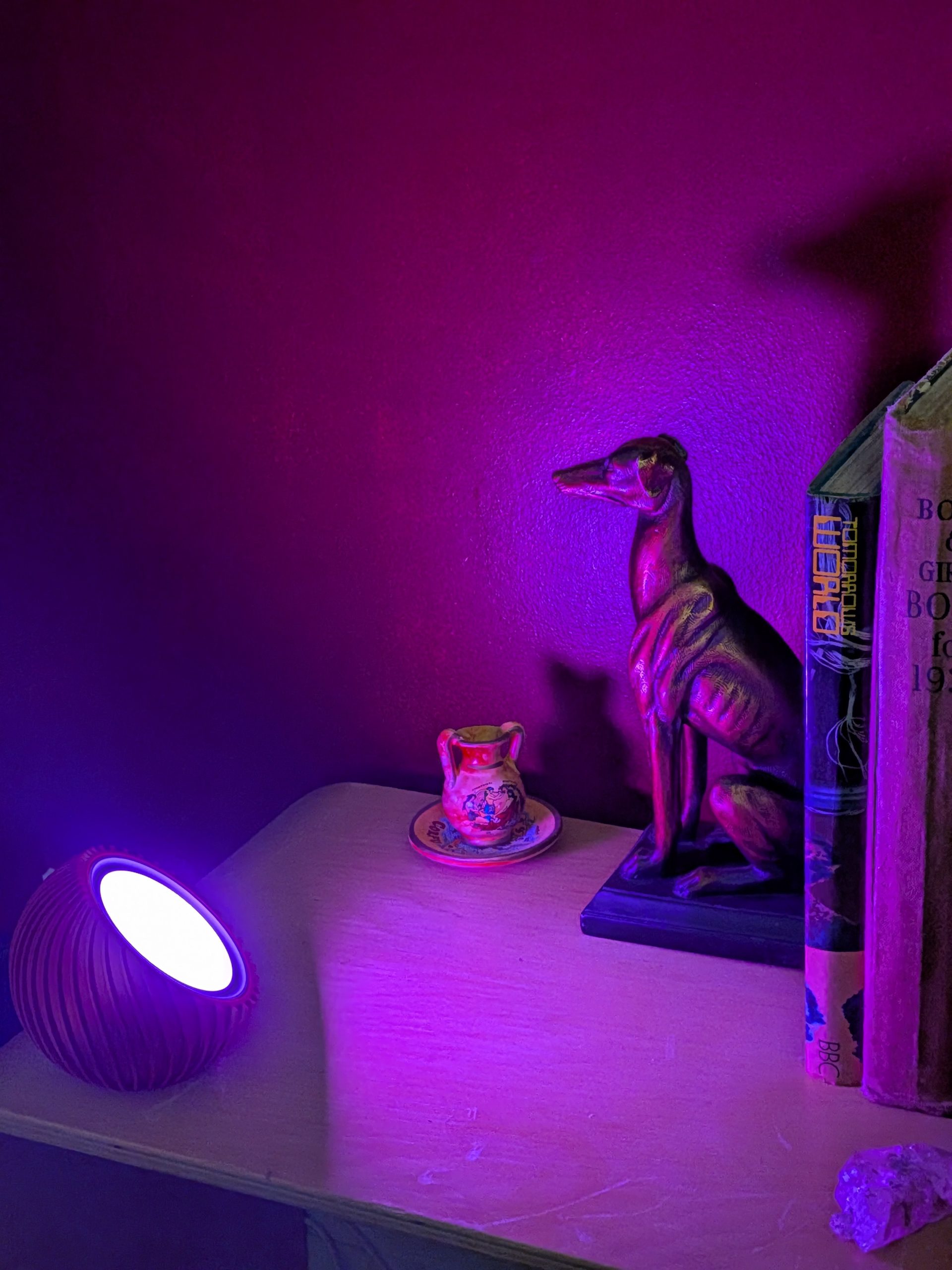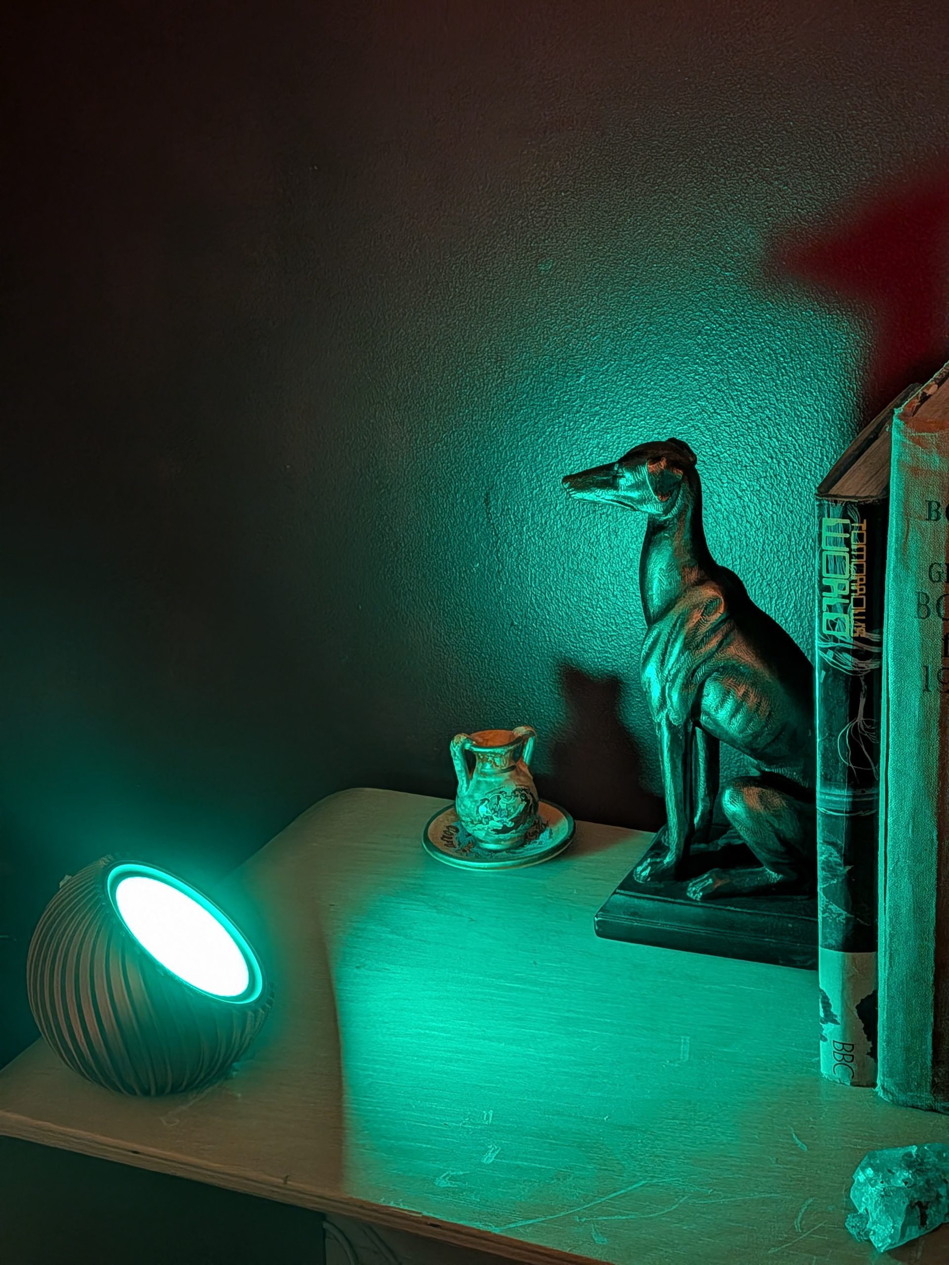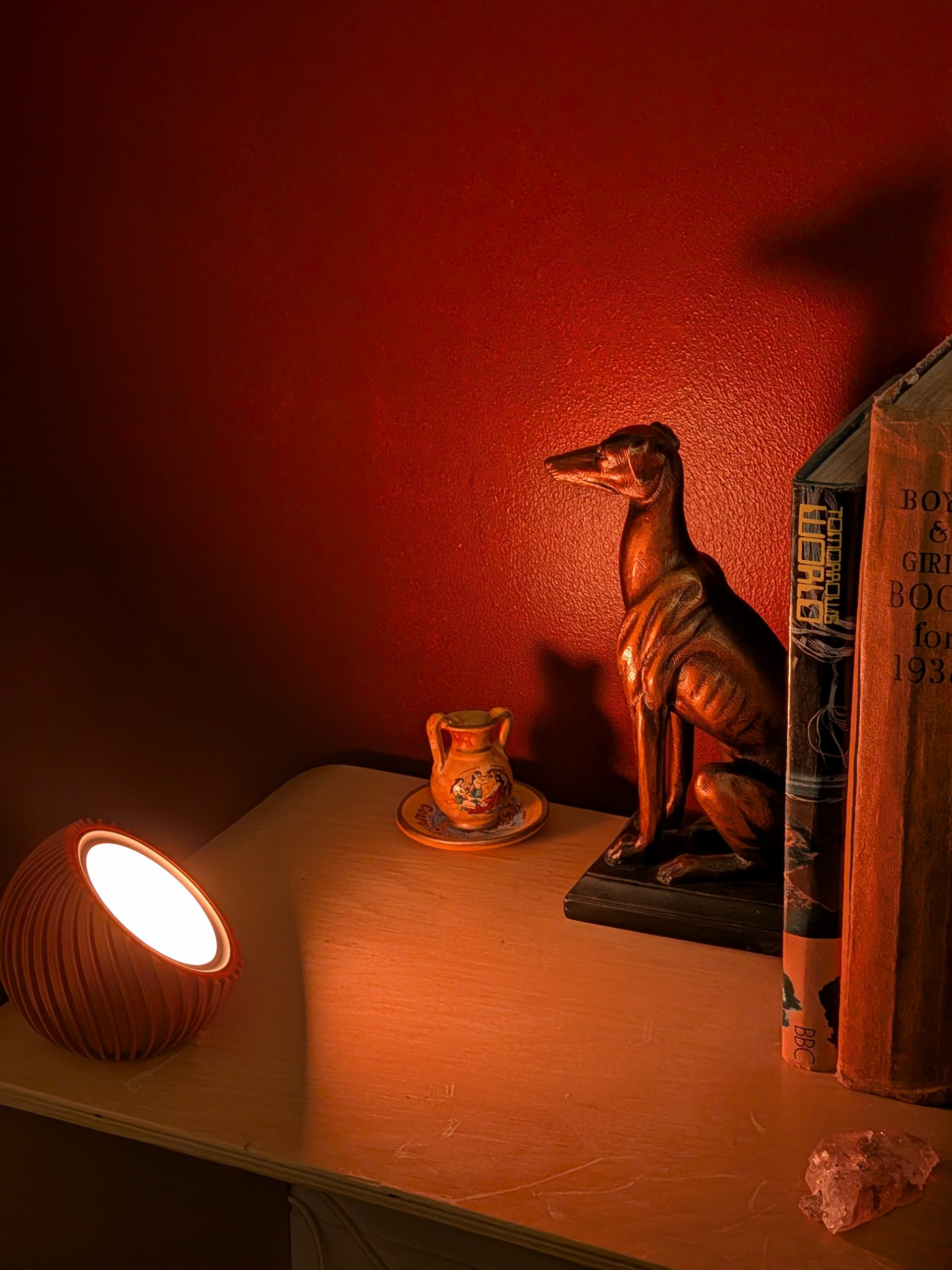 At 106mm in diameter and 96mm tall, it’s small enough to sit comfortably on a shelf, bedside table, or tucked into a cosy nook—but it has a presence that quietly transforms the space around it.